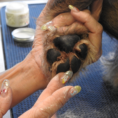Die Pfotenpflege ist sehr wichtig, man sollte im Welpenalter damit beginnen. Die kleinen Hunde würden sich dazu gewöhnen, und im jungen Alter gäbe es später weniger Widerstand gegen die nervige Pfotenpflege. Sie brauchen besonderen Schutz vor allem im Winter. Wenn sie wund und rissig werden, bereitet den Hunden das Streusalz grosse Schmerzen. Es gibt im Fachhandel spezielle Schutzsprays und Salben für die Pfotenpflege. Man sollte auch an nasskalten Tagen die Pfoten vor dem Spaziergang gut eincremen und danach mit.